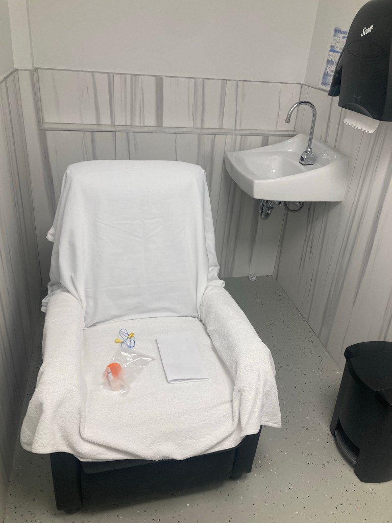 The thought of hearing a bunch of other dudes trying to ‘produce at the clinic’ will in fact not help me ‘produce’ anything. I didn’t realize until today, Game Day as I’m calling it, that I had the option to ‘produce’ before the appointment and just bring in a sample.